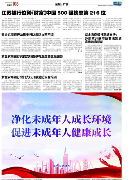 江苏银行位列《财富》中国500强榜单第216位紫金农商银行葛塘支行:多形式开展防范非法集资宣传教育活动紫金农商银行龙袍支行防疫防火两不误紫金农商银行灵钢支行提供有温度的金融服务紫金农商银行北门支行开展消防安全培训