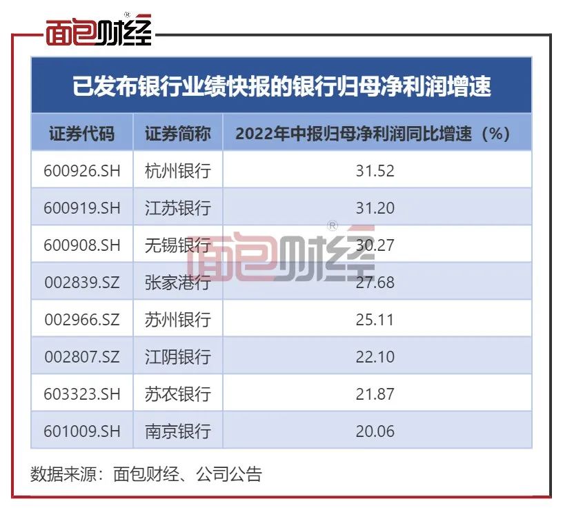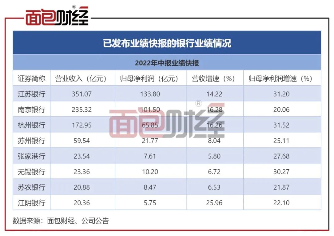 在已公布业绩快报的银行中,江苏银行归母净利润增速较快,仅低于杭州银行0.3个百分点。