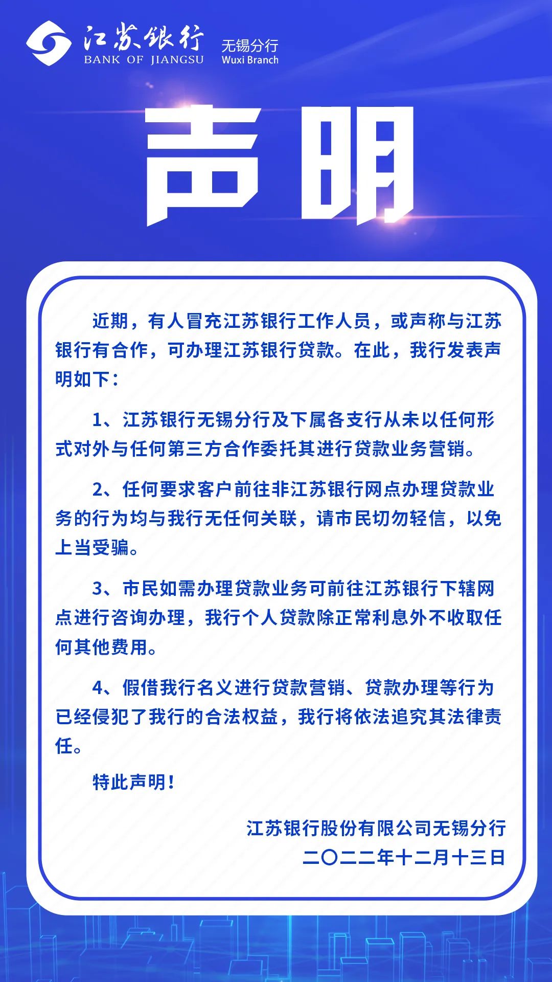 特此声明丨关于警惕假借江苏银行工作人员名义营销宣传的声明