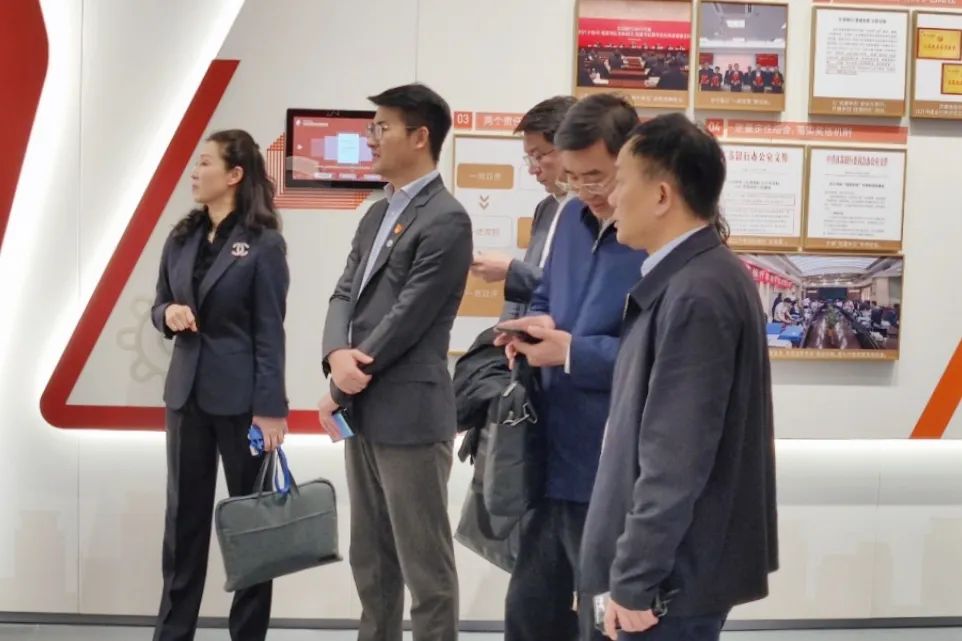 仪式结束后,夏平带领蒋承志等到访的领导、嘉宾参观江苏银行展馆,详细介绍了江苏银行的发展历程、企业文化、荣誉奖项以及党建工作。
