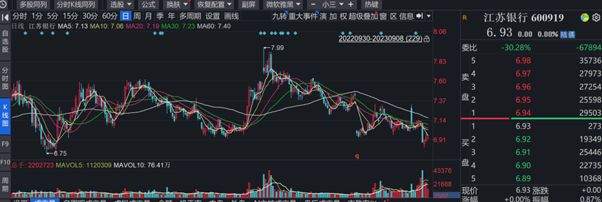 转股后的投资者为尽快兑现收益,势必会卖出股票,届时江苏银行股价在短期内将面临一定的抛压。在发布赎回可转债公告接下来的交易日,江苏银行股价开盘后便一路走低,最终收盘大跌3.51%,创下今年以来最大跌幅,而且股价也跌破7元大关。