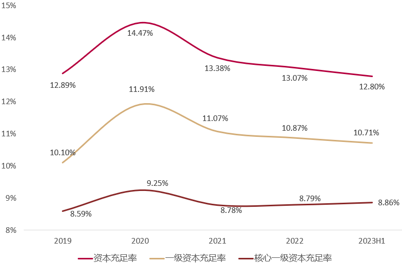 2019年至2023年上半年江苏银行资本充足率指标