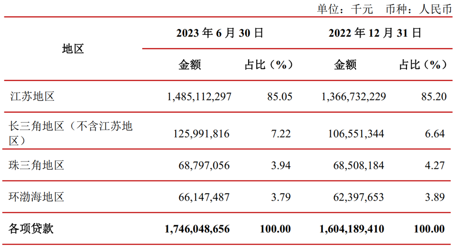 江苏银行贷款按地区分布情况,来源:江苏银行2023年半年报