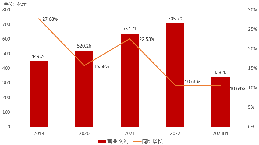 2019年至2023年上半年江苏银行营业收入及其增长率
