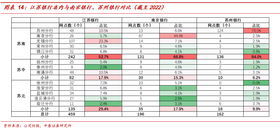 1.2.3 苏银省内布局:苏南份额占比高;苏北竞争力强于可比同业