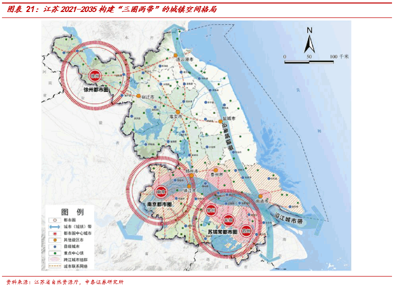 7月25日,国务院正式批复《江苏省国土空间规划(2021—2035年)》,这也是全国首部省级国土空间规划,其中将以徐州为中心的徐州都市圈提高到了与南京都市圈和苏锡常都市圈同等的地位。到2025年底,江苏目标高铁覆盖所有地级市,苏北地区的发展有望进一步打开。