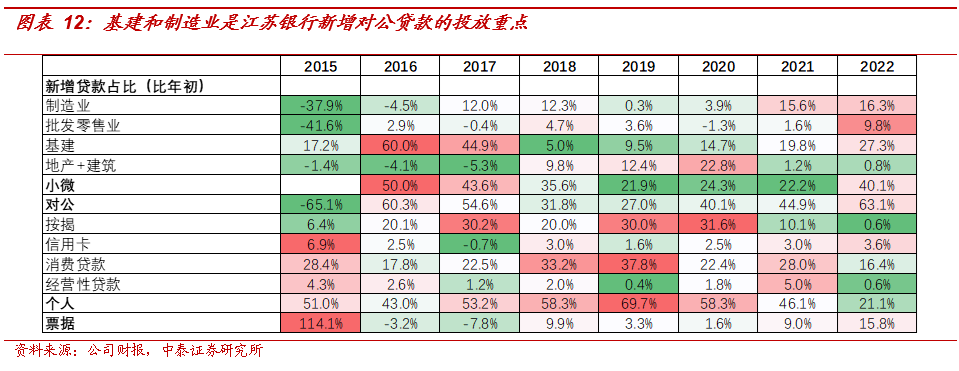 1.2 对公业务:植根区域经济,制造业和基建是对公基石,苏南苏中是发力重点,苏北较同业竞争力更强