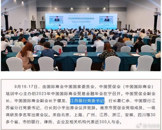 9月19日,南京贸促官方公众号发布文章显示,现场出席的嘉宾就有江苏银行党委书记、行长葛仁余,这也进一步佐证了其职位的升迁。