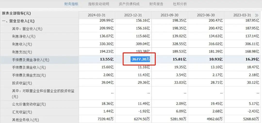 深蓝财经还关注到,第四季度江苏银行手续费及佣金净收入这一科目出现了亏损。这也导致四季度营收增长不及预期。