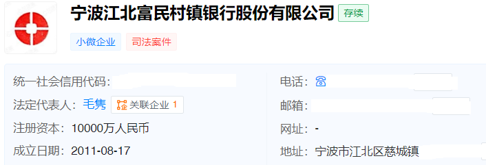 宁波江北富民村镇银行成立于2011年8月,注册资本10000万元,法定代表人毛隽。该行是由盛京银行作为主发起人,联合当地实力型企业共同发起组建的,具有独立法人资格的银行业金融机构。