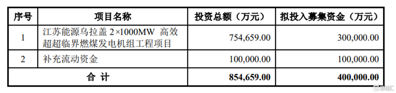 本次IPO拟募集的资金主要用于江苏能源乌拉盖2×1000MW高效超超临界燃煤发电机组工程项目、补充流动资金。