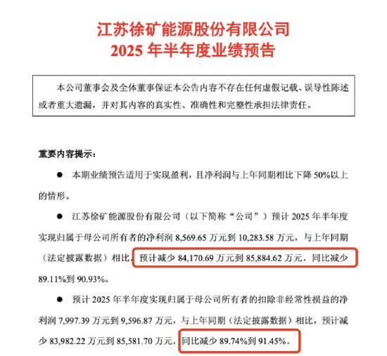 预计上半年归属于母公司所有者的净利润在8569.65万元至10283.58万元之间,同比减少8.41亿元至8.58亿元,降幅高达89.11%至90.93%。