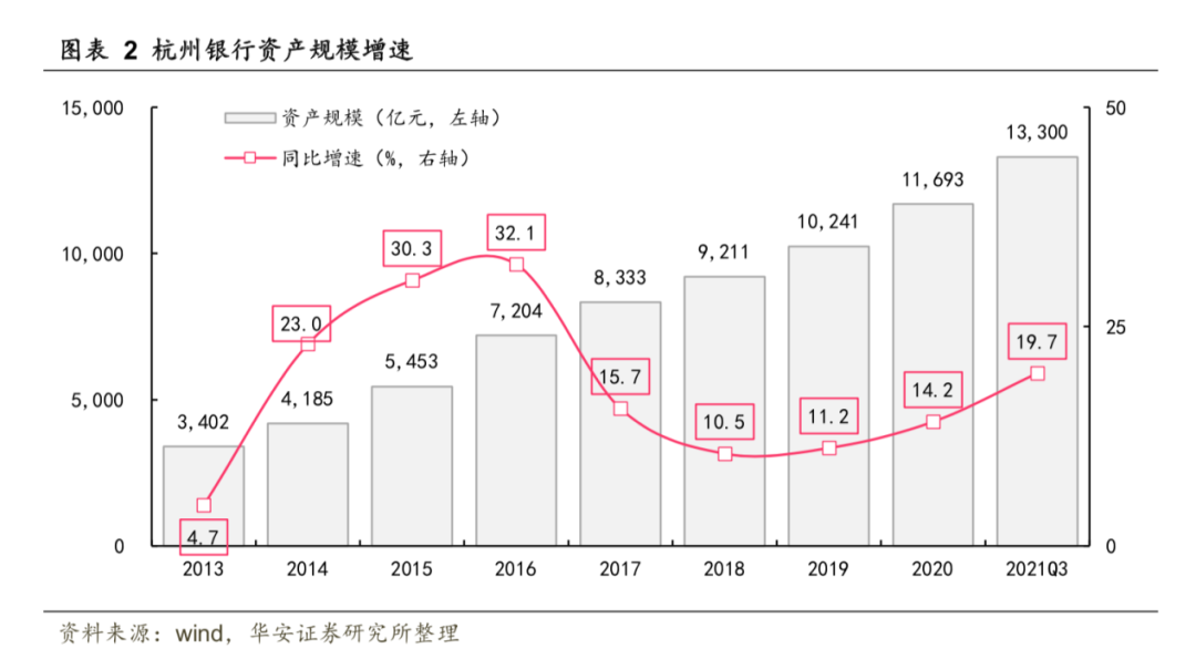 截至2021年9月末,杭州银行总资产达到1.33万亿元,在城商行中排在第七位。2021年前三季度,该行实现营业收入223.77亿元,较上年同期增长19.97%,实现归属于公司股东净利润70.36亿元,较上年同期增长26.16%。