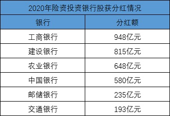 数据显示,险资重仓持有的六大国有银行2020年现金分红合计达3419亿元,创历史新高。其中,工商银行分红额达948亿元;建设银行(601939)、农业银行、中国银行分别达815亿元、648亿元、580亿元;邮储银行、交通银行(601328)分别为235亿元、193亿元。股息率方面,六大国有银行近两年股息率普遍在5%上下波动,个别银行股息率甚至超过险资配置的部分债券收益率。