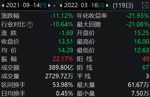 就个股而言,杭州银行在昨天大跌6.4%后,今日收涨4.97%,收盘价13.51元/股。但近半年的时间里,杭州银行股价已经跌超11%,最大回撤达21.06%。