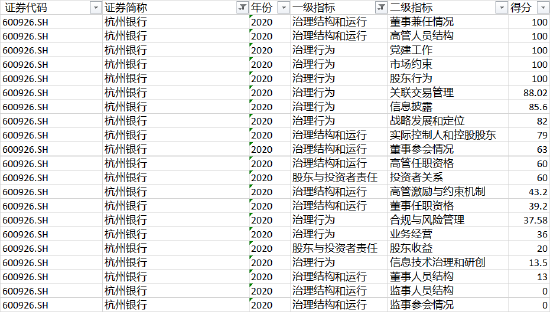 通过查询其公司治理(G)分数,可以看到杭州银行在合规与风险管理方面表现不佳。