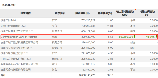 无独有偶,除太平洋人寿保险频频减持外,杭州银行原第一大股东澳洲联邦银行也在2022年3月通过协议转让的方式,以每股13.94元的价格分别向杭州城投及杭州交投转让其持有的公司股份各2.968亿股。转让完成后,澳洲联邦银行退出第一大股东之位,持股比例由15.57%降至5.56%。