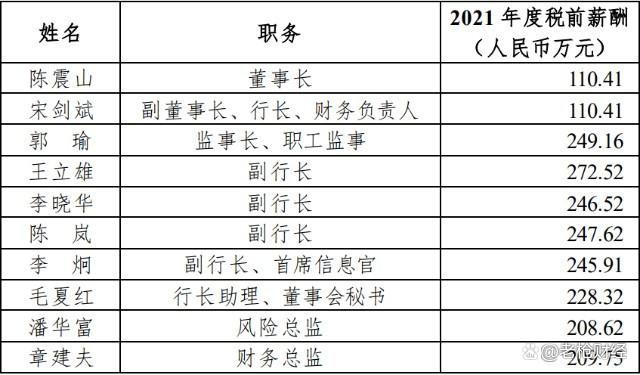 难能可贵的是,年轻有为的宋剑斌的薪酬在杭州银行众多高管中颇有点“活雷锋”的意思。就在今天,杭州银行发布了一份高管薪酬的公告,显示去年身为行长的宋剑斌薪酬只有110.41万元,在杭州银行10名高管中排名几乎垫底,甚至不及多名副行长薪酬的一半。见下图: