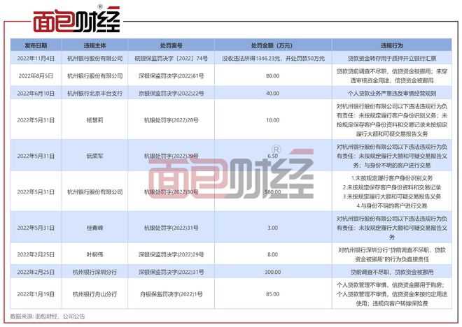 2022年2月25日,深圳银保监局披露,杭州银行深圳分行因“贷前调查不尽职,贷款资金被挪用”的违规行为被处以罚款300万元。