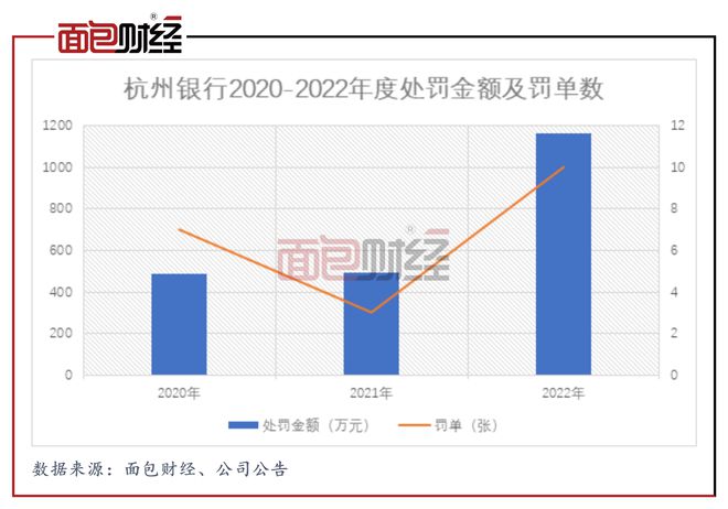 值得注意的是,2020年至2022年,杭州银行处罚金额逐年升高。