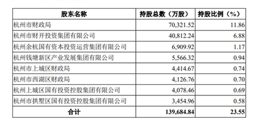 本次权益变动不涉及股份变动,变动前,杭州市财政局及其一致行动人合计持有杭州银行股份13.968亿股,占比23.55%。