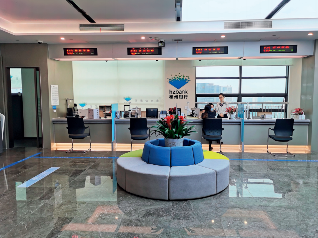 杭州银行智慧网点转型,秉承“以客户为中心”,将传统银行服务模式和创新科技有机结合,致力于打造标准化、智能化、轻型化的网点。杭州银行智慧网点转型发端于2015年的厅堂智能化机具的应用,合理布局厅堂功能分区,科学设计客户动线,培育客户习惯从柜台办理转变为自助办理,分层分类科学制定网点的标准化柜口设置及柜员配置;2018年迅速在全行网点铺开推广,实现智慧网点覆盖率100%;2019年后,立足于物理网点的转型,致力于拓展物理网点服务半径,建设大运营网络,开始布局移动银行,打造了“登门办”外卖服务品牌,专业人员上门为客户办理业务;探索远程银行,足不出户为客户提供远程音视频方式办理业务;构建“e网办”网络银行,推进柜面业务的线上化,促进线上线下业务的互联互通无缝流转衔接。
