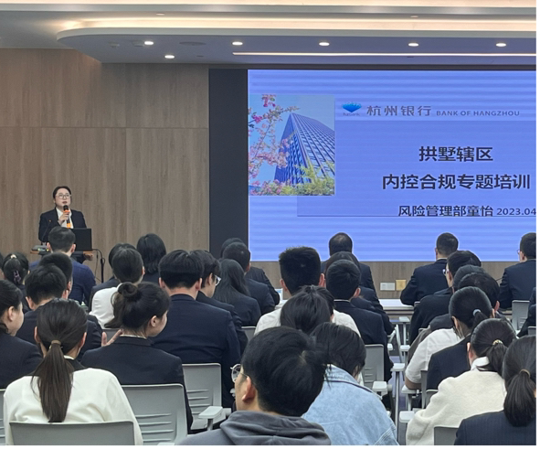 拱墅支行为进一步增强合规内生动力,强化全员合规意识,持续厚植合规文化,开展合规专题宣教培训,培训围绕三个方面开展:一是开展合规工作解读,结合员工日常违规行为、常见案件风险,围绕新发文的《员工违规行为扣分管理办法》(违规事项库管理问责事项清单)等内容进行全面讲解,同时布置下阶段内控合规及示范行带教相关工作。二是开展营销条线合规操作警示教育,通过典型案例,以案为鉴、以案明纪,要求全员做到“知底线、守底线、不越线”,为全辖合规经营保驾护航。三是开展廉政宣教,围绕廉政教育、廉洁思想等方面,有效引导,要求全员坚持“廉洁从业,践诺践行”原则,共同营造“内化于心,外赋于形”的廉洁文化氛围。