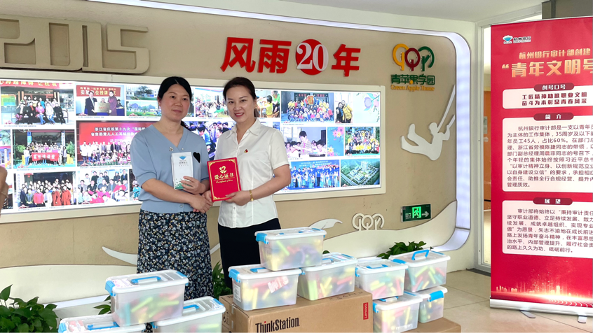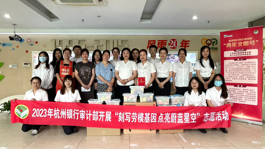 为充分发挥青年员工的社会责任感,6月14日,杭州银行审计部“青年文明号”创建集体组织部门青年员工走进浙江康复医疗中心青苹果学园,开展“刻写劳模基因,点亮蔚蓝星空”关爱儿童志愿活动。