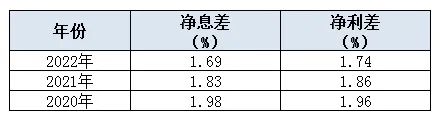 与此同时,杭州银行近三年的净息差及净利差也在逐年下降。其中,净息差从2020年的1.98%下降至去年的1.69%;净利差从2020年的1.96%下降至去年的1.74%。