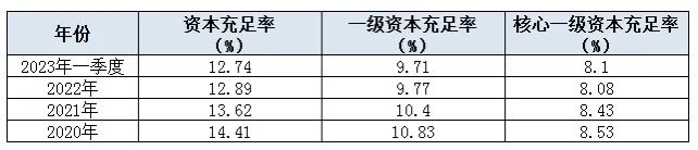 据杭州银行今年一季报显示,该行资本充足率由2022年末的12.89%下降至今年一季度的12.74%;一级资本充足率由9.77%下降至9.71%;核心一级资本充足率由8.08%微增至8.1%。