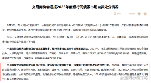 去年以来,已有多家银行因债券定价偏离市场、低价违规包销、未按规定余额包销等行为,受到中国银行间市场交易商协会的自律调查。亦有多家银行作为债务融资工具主承销商及簿记管理人,因违反规则,被通报批评或警告处分,并处责令改正。