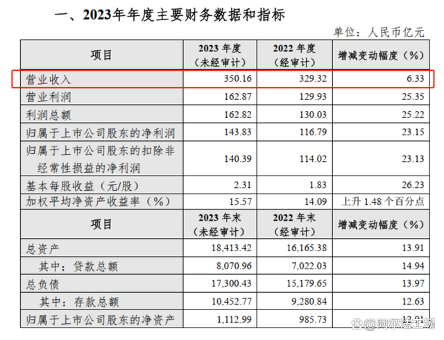 从资产规模看,截至2023年末,杭州银行总资产较上年末增长13.91%;总负债较上年末增长13.97%。但这并没有带来经营业绩同比例增长。