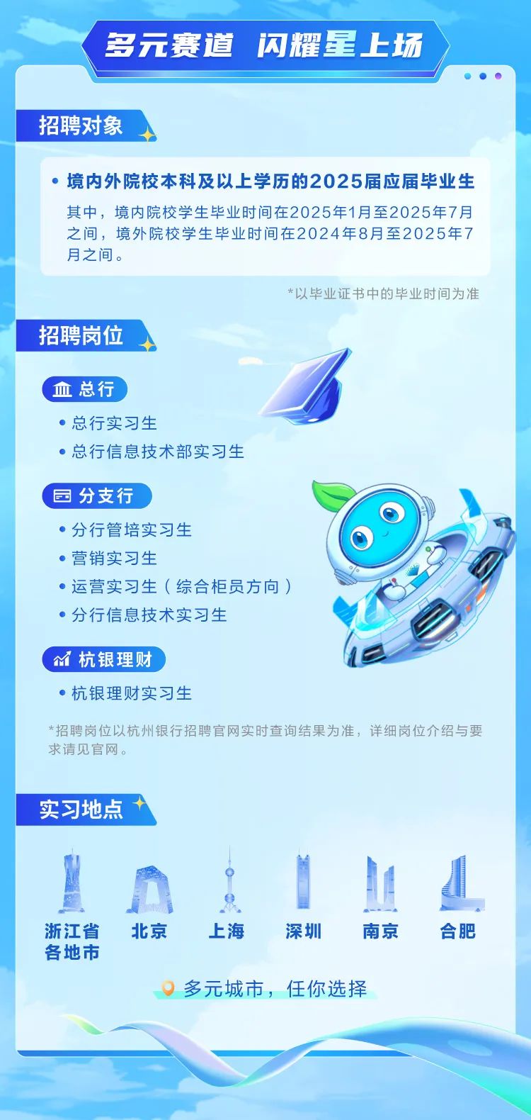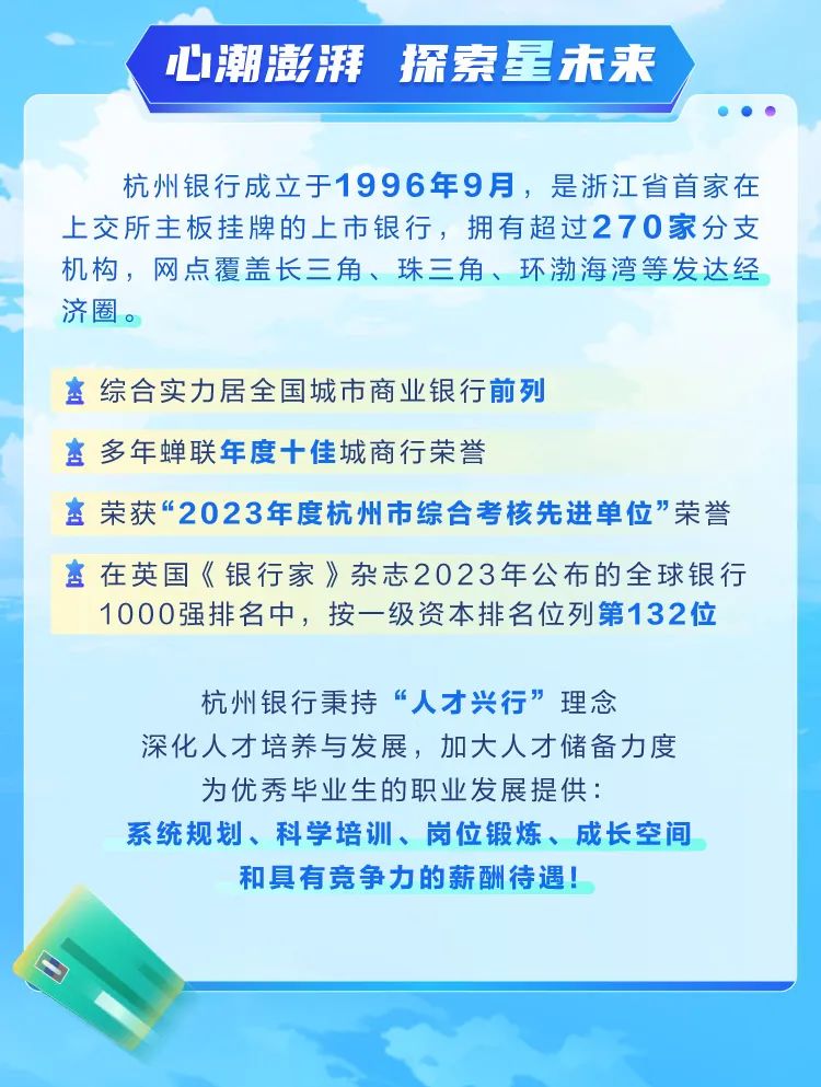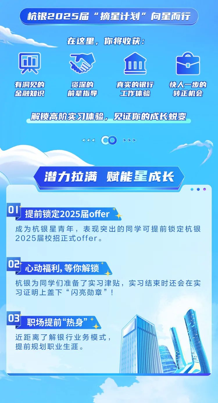 杭州银行2025届校招提前批暨“摘星计划”暑期实习生招聘