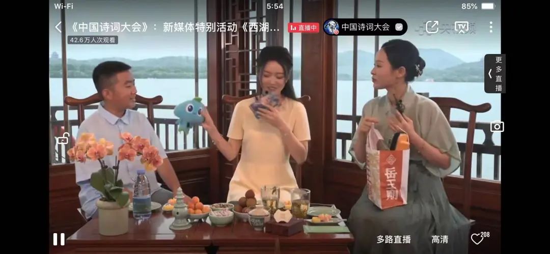在当天下午,《中国诗词大会》冠军、人气选手及西湖景区优秀讲解员通过慢直播的形式,畅游了西湖3小时,带领线上观众云游美景,诗话西湖,受到网友热捧。