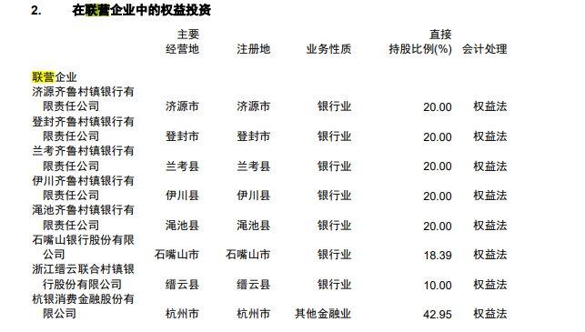 首先,杭州银行的联营企业主要包括7家村镇银行。在今年上半年中小银行风险压力加大,净利润、拨备覆盖率都下降明显,不良贷款率从去年同期1.59%升至1.75%的背景下,它们承受的经营压力更是可想而知。