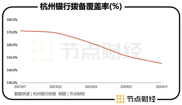 2024年上半年,杭州银行拨备覆盖率为545.17%,相较上年同期的571.07%,下降25.9%,但仍处在行业前列。