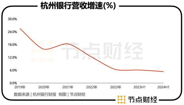 体现在各行身上,营收增速放缓是普遍的特征。杭州银行亦不例外。