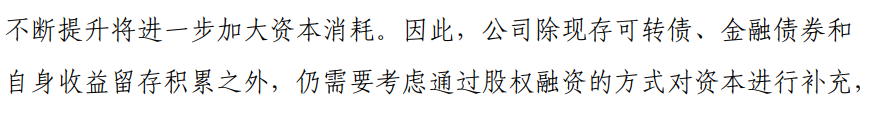 当时的《向特定对象发行A股股票方案的论证分析报告(修订稿)》是这么说的:公司业务的持续发展和资产规模的不断提升将进一步加大资本消耗。因此,公司除现存可转债、金融债券和自身收益留存积累之外,仍需要考虑通过股权融资的方式对资本进行补充,以保障资本充足水平。