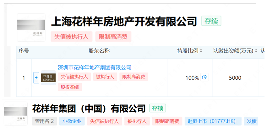 上海花样年及其控股股东深圳花样年集团以及花样年香港上市主体成了清一色的失信被执行人。