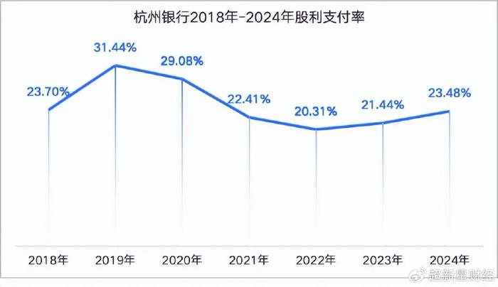 与众多上市银行相比,杭州银行分红比例偏低。2024年度,招商银行分红比例达35.32%,在股份制银行中表现突出;兴业银行在2024年首次将分红比例提升至30%以上,中信银行分红比例同样超过30%。国有六大行凭借庞大业务体量,分红规模占据主导地位,分红比例稳定在30%左右,如工商银行2024年分红规模达1097.73亿元,分红比例为30.0%,还推出中期分红。
