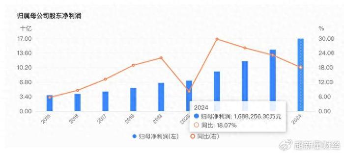 年报数据显示,2024年杭州银行实现营业收入383.81亿元,同比增幅达9.61%;归属于母公司股东的净利润为169.83亿元,同比增长18.07%。在已公布业绩的35家A股上市银行中,其归母净利润增速位居前三。