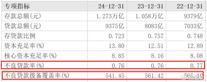 从财报数据看,2022年-2024年间,杭州银行的不良贷款率分别为0.77%、0.76%、0.76%,基本保持低数值的稳定状态;拨备覆盖率也较高,分别为565.10%、561.42%、541.45%,高于其他浙系银行。低不良贷款率,高拨备覆盖率,如此看来,杭州银行似乎有着良好的风险抵御能力。