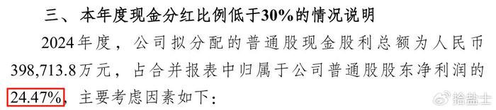 财报数据显示,2024年杭州银行现金分红占合并报表中归属于公司普通股股东净利润的24.47%,较去年的22.52%有所提升,但在城商行中的排名并不靠前。“吝啬”的分红政策引起众多投资者的不满,有业内人士猜测股东频繁减持杭州银行或有此原因。