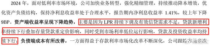 此外,杭州银行的净利差也在下降。2024年,杭州银行的净利差为1.51%,较2023年下降0.08个百分点,据年报内容显示主要是因为LPR持续下调、贷款新增利率持续下行叠加存量贷款重定价影响等,通过降低贷款利率的方式吸引优质客户,造成短期内银行利润增长受阻。
