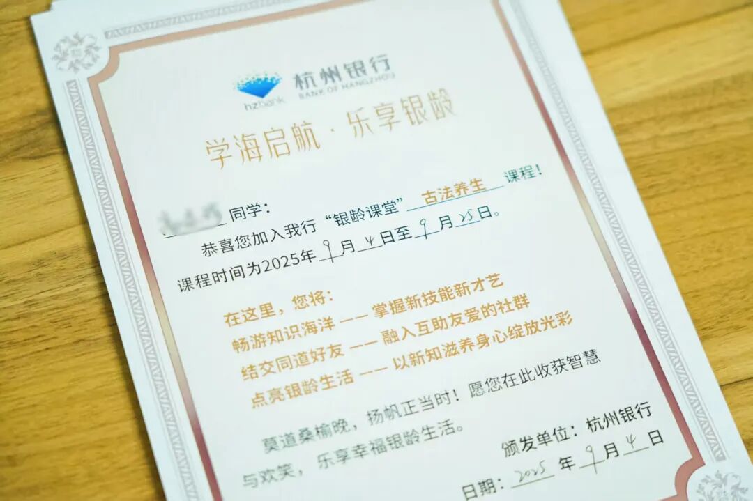 杭州银行以“课堂”为桥,将养老金融与兴趣培养相结合,2025年6月,杭州银行首期“银龄课堂”与浙江老年大学合作启动,成为“老有所艺”的核心实践。在余杭、江干、拱墅、城东四大辖区开设《八段锦》《营养与健康》《手机摄影》《书画鉴赏》四门课程,以社区与党群服务中心为阵地,辐射50-75岁银发客群近100人。课程不仅是知识的传递,更成为金融服务的“触点”——在书画鉴赏的笔墨间,在手机摄影的光影里,客户经理以朋友的身份融入,为银发金融服务注入新活力。