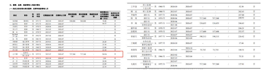 薪酬方面,根据2024年年报,杭州银行共有10名董监高税前年薪超百万元,其中8人超200万元。王立雄2024年薪资为248.96万元,位列全行第二,仅次于副行长张精科(252.57万元);而董事长宋剑斌仅为76万元,不足王立雄的三分之一。