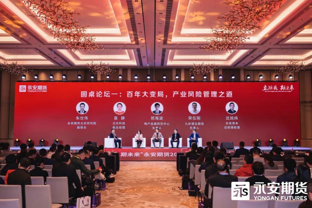 首场圆桌论坛聚焦“百年大变局,产业风险管理之道”。论坛由永安期货北京研究院副院长朱世伟主持,汇聚了北合科技副总经理袁静、物产金属研究中心负责人邢海波、九岭锂业期现负责人荣伍刚、永安资本总经理助理沈旭炜等业内资深人士,深入探讨了农产品、黑色、有色、化工产业链的变化趋势和价格风险应对策略,为产业客户提供了宝贵的风险管理建议。