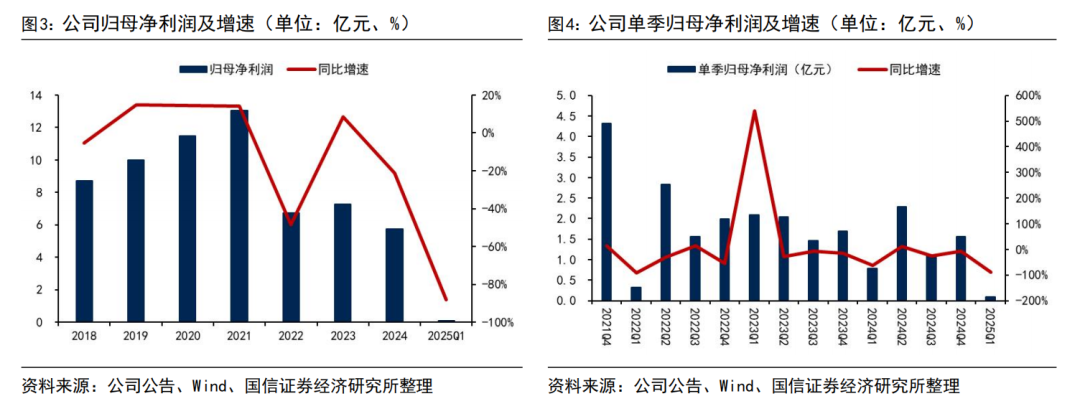 2024年全年,公司实现营收19.44亿元(净额法,后同)、同比+3.79%,归母净利润5.75亿元、同比-21.07%。全年加权平均ROE4.56%、同比-1.41pct。2025Q1实现营收2.06亿元、同比-53.39%,归母净利润0.09亿元、同比-88.08%。2024年分部业务增速:期货经纪-3.78%、风险管理(净额法,后同)-20.83%、境外业务+132.21%、基金销售-12.09%、资产管理+85.17%,分部业务占比:期货经纪54.7%、风险管理20.6%、境外业务21.4%、基金销售2.7%、资产管理1.3%。2024年利润下降的主因为期货经纪、风险管理等的利润率有所下降。