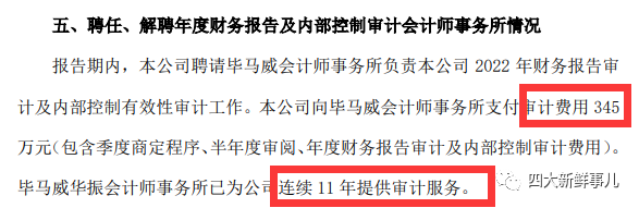 根据公司2022年年度报告披露,该公司已与毕马威合作11年。该公司2022年度支付毕马威345万元的审计费用。