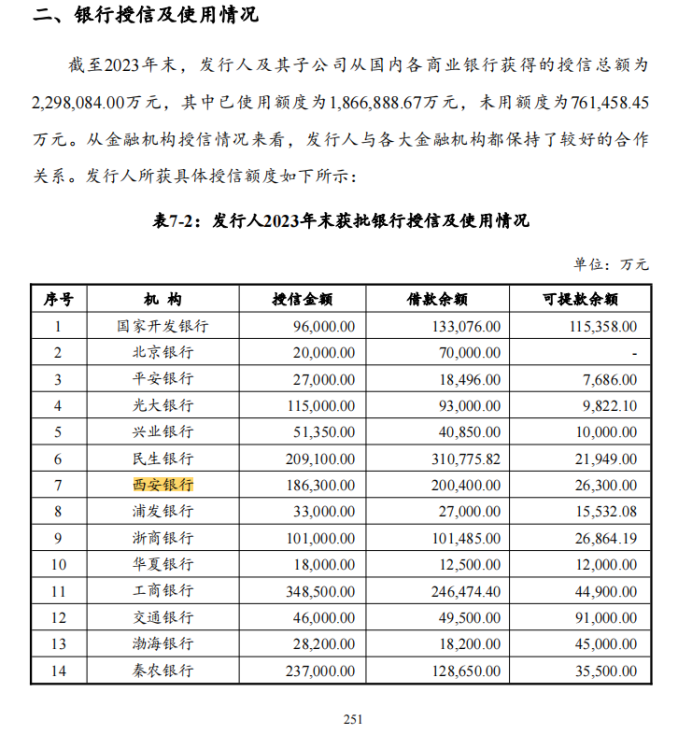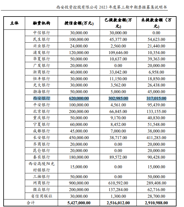 比如西安曲江文化产业投资(集团)有限公司(以下简称西安曲江文投集团)在其《2024年度第一期超短期融资券募集说明书》中披露,截止到2023年底,西安曲江文投集团在西安银行的借款余额高达20.04亿元。